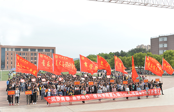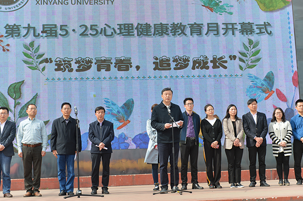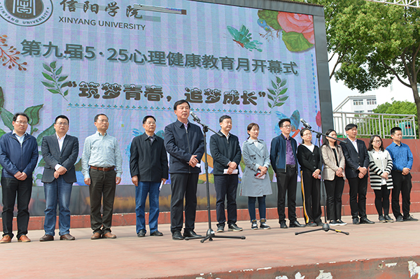 在热烈的掌声中,施昌海宣布:筑梦青春,追梦成长——信阳学院第九届“5•25”心理健康教育月开幕。
