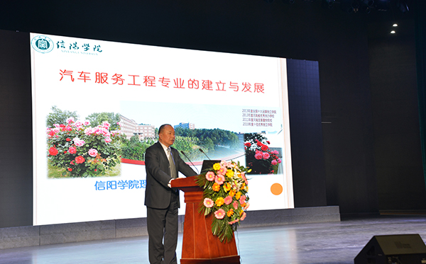 大会主报告中,同济大学靳文瑞教授,湖北汽车工业学院周海鹰教授,武汉理工大学蔡永华教授,东风汽车股份有限公司张晶峰教授,信阳学院明平顺教授、肖生发教授分别以《中德双学位汽车工程与服务(AES)科技人才培养创新实验区的时间和思考》《面向智能网联汽车的HUAT东风协同育人模式创新与实践》《关于汽车服务工程专业认证的几点思考》《轻型商用车价值工程分析方法创新与实践》《汽车服务工程专业的建立与发展》《MOOC课程及教材建设的实践》为题作了演讲。
