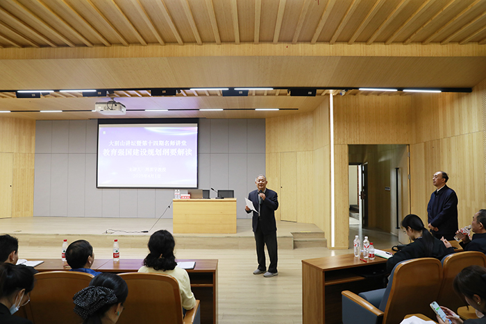 4月1日下午,我校在浉河校区图书馆101报告厅举行主题为“《教育强国建设规划纲要(2024—2035年)》解读”的大别山讲坛暨第十四期名师讲堂,活动邀请当代教育名家、第十三届全国人大常委会委员、中国教育学会副会长、中国教育发展战略学会副会长、华中师范大学教育学院二级教授周洪宇担任主讲嘉宾。副校长王强出席了此次报告,教师教学发展中心主任孟宪乐、各教学单位院长、教学副院长、教研室主任及师生代表聆听了报告。活动由王强主持。