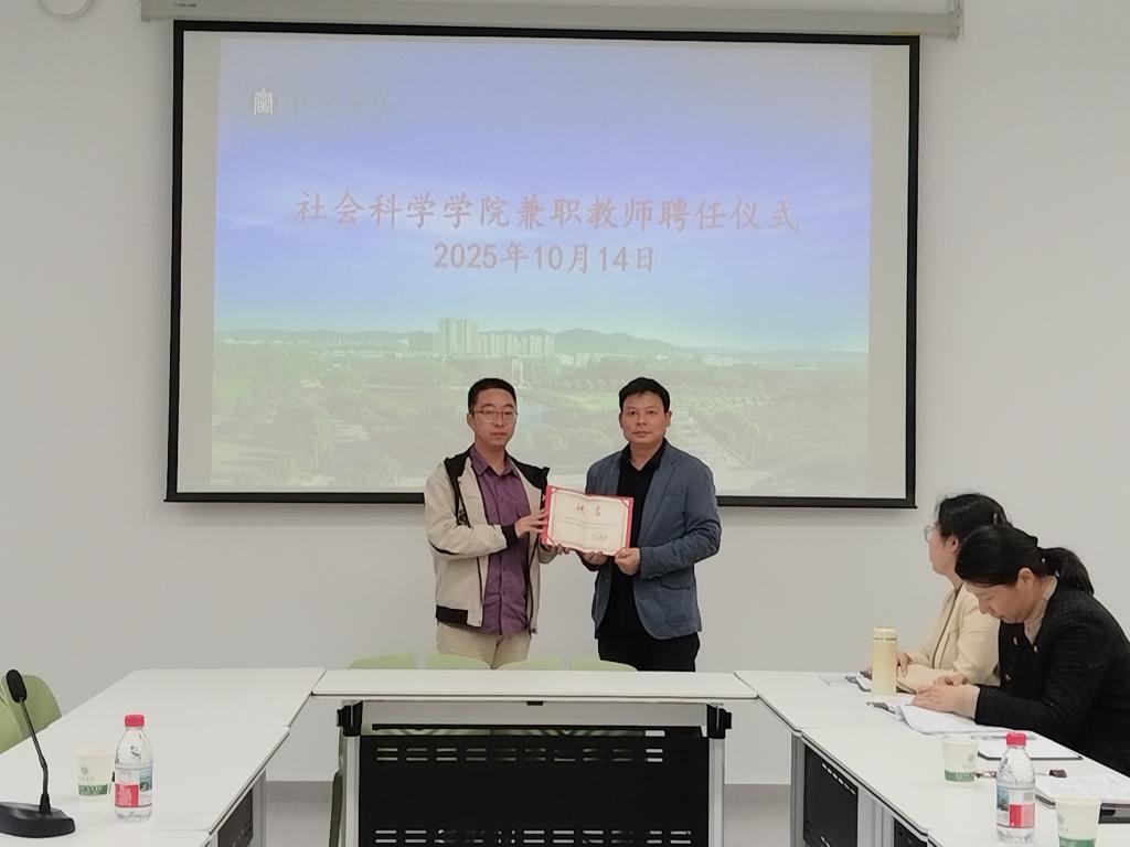 讲座最后,寇博文副院长代表社会科学学院为朱学文老师颁发兼职教师聘书,并表示将以此次合作为契机,通过共建实践基地等方式,提升历史学专业人才培养质量。