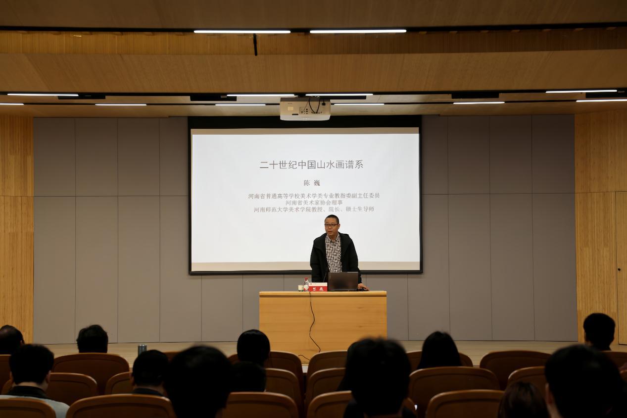 4月16日下午,应美术与设计学院邀请,河南师范大学美术学院院长、硕士研究生导师陈巍教授在浉河校区图书馆101学术报告厅作了题为“二十世纪中国山水画谱系”的讲座报告。美术与设计学院党总支书记郑山峰、美术研究所所长袁汝波及美术学专业200余名师生共同聆听了讲座。教学副院长王伟主持了讲座。