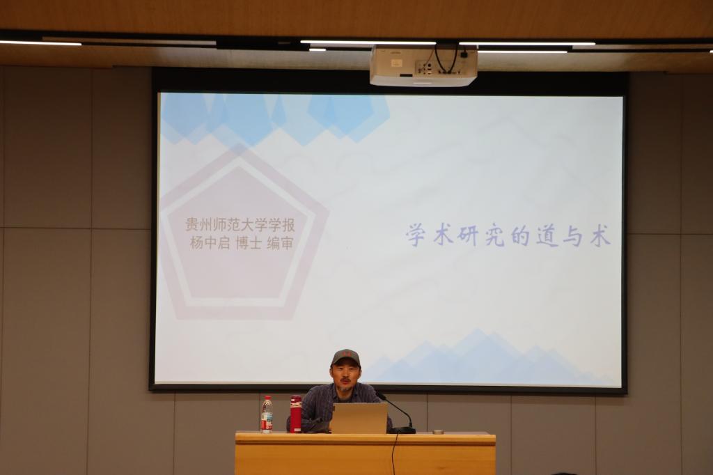 为规范论文写作与发表流程,提升教师学术研究能力,4月22日上午,学校特邀贵州师范大学马克思主义学院博导、《贵州师范大学学报》(社会科学版)编审杨中启教授来校作题为“学术研究的道与术”的专题讲座。本次讲座由教师教学发展中心主任孟宪乐主持,马克思主义学院党总支书记陈金强、副院长黄成勇,以及各院部160余位中青年教师围绕这一主题展开了深入研讨。