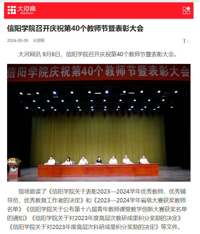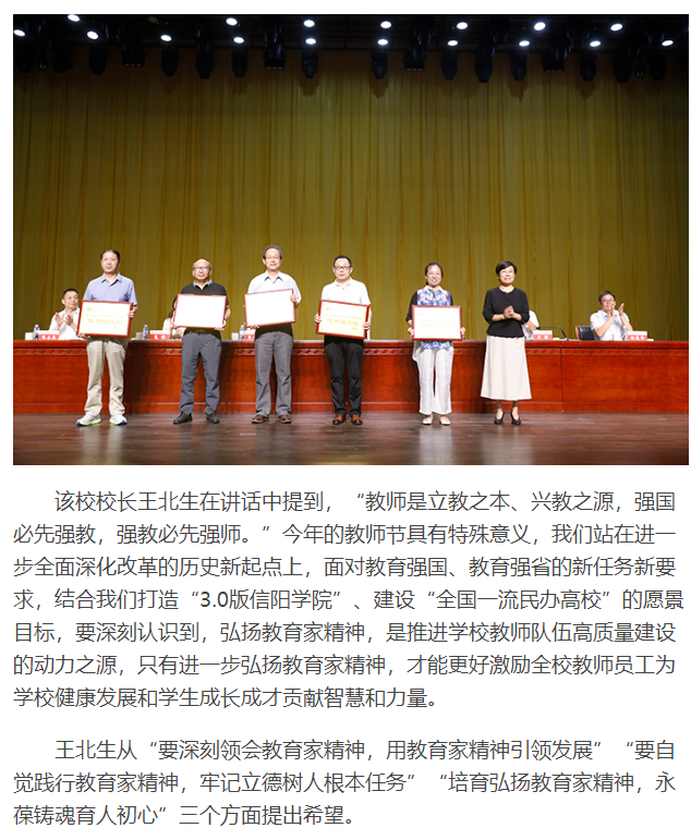 【大河网】信阳学院召开庆祝第40个教师节暨表彰大会