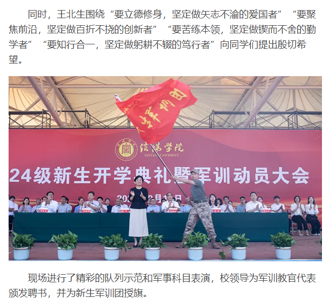 【大河网】开学季∣信阳学院举行2024级新生开学典礼暨军训动员大会