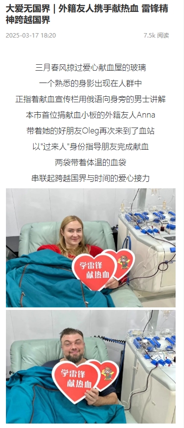 【信阳广播电视台】大爱无国界 外籍友人携手献热血,雷锋精神跨越国界