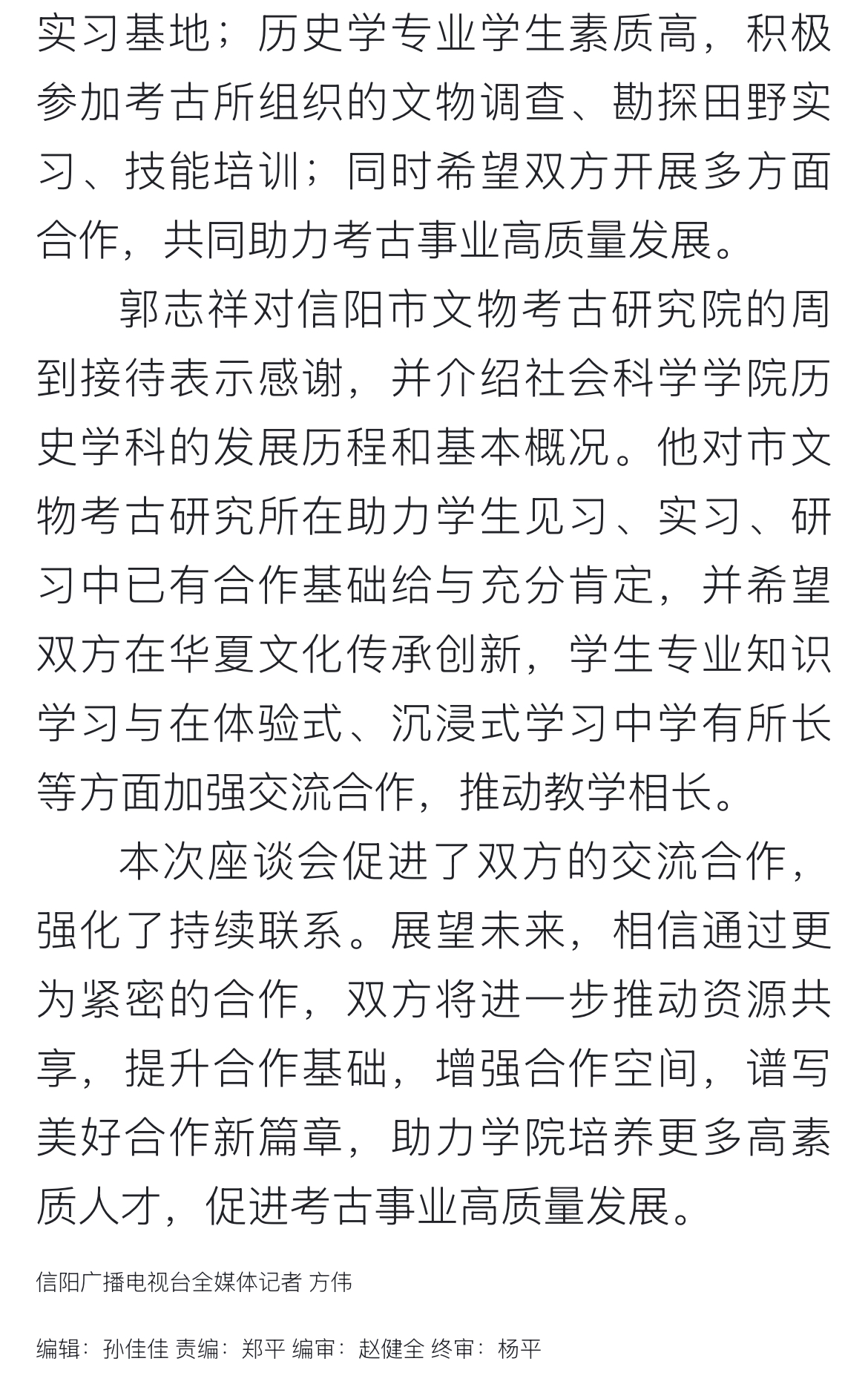 【信阳广播电视台】信阳学院社会科学学院院长郭志祥一行到市文物考古研究所交流座谈