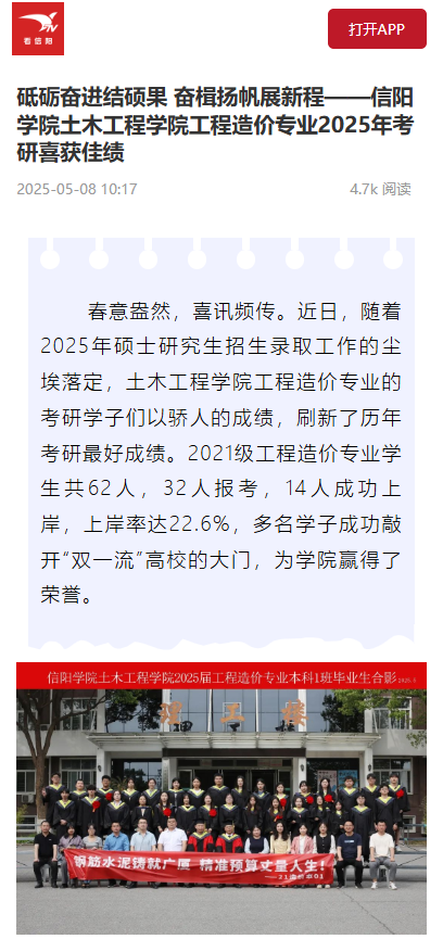 【信阳广播电视台】砥砺奋进结硕果 奋楫扬帆展新程——信阳学院土木工程学院工程造价专业2025年考研喜获佳绩