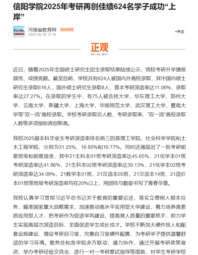 【正观新闻】信阳学院2025年考研再创佳绩624名学子成功“上岸”