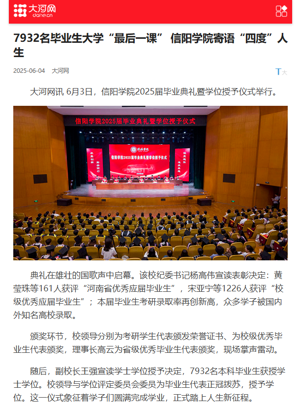 【大河网】7932名毕业生大学“最后一课” 信阳学院寄语“四度”人生
