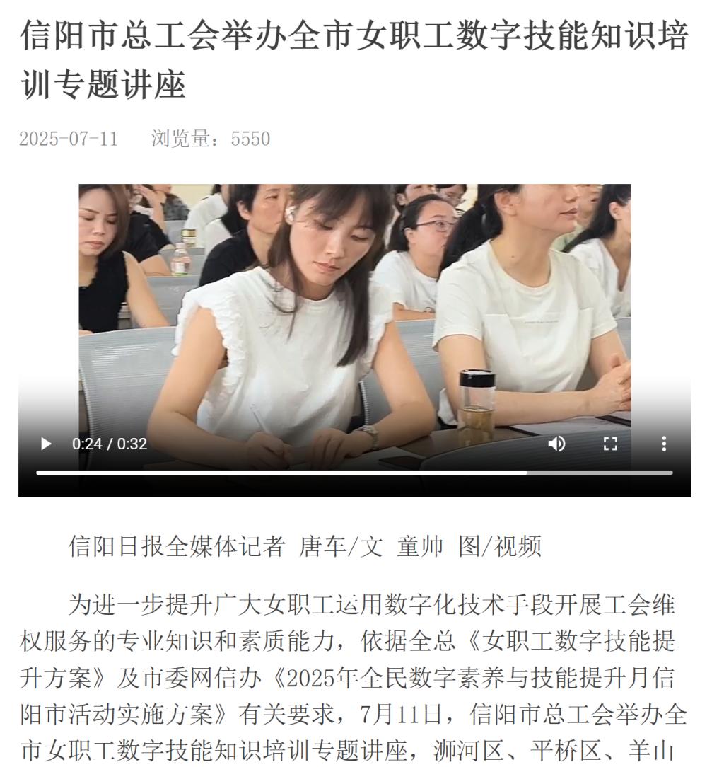 【e览浉河】信阳市总工会举办全市女职工数字技能知识培训专题讲座