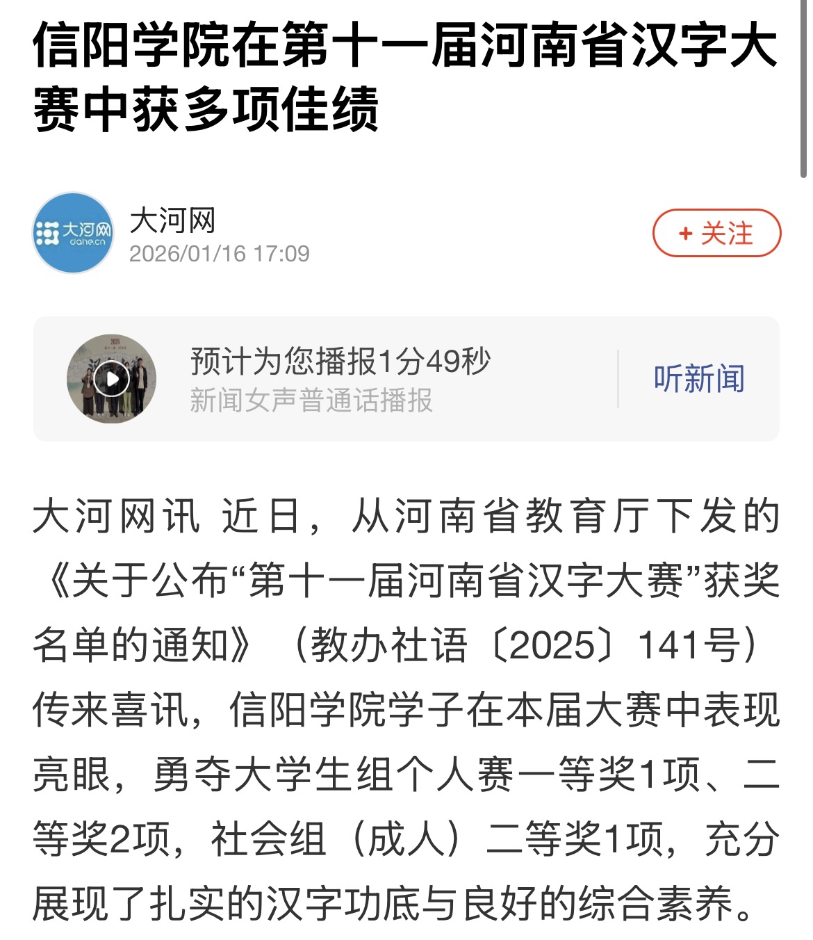 【大河网】信阳学院在第十一届河南省汉字大赛中获多项佳绩