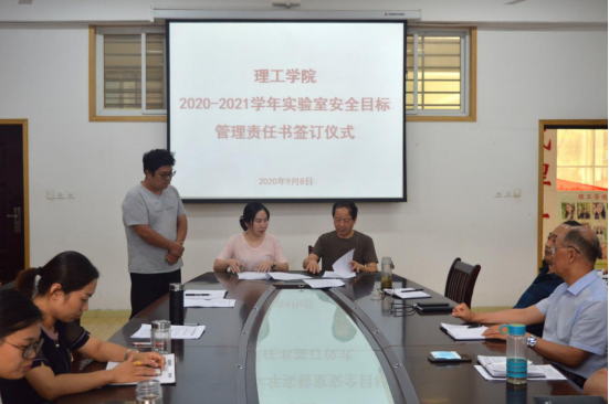 会上,举行了2020—2021学年理工学院实验室安全目标管理责任书签订仪式,肖生发院长与各实验室负责人签订了责任书。