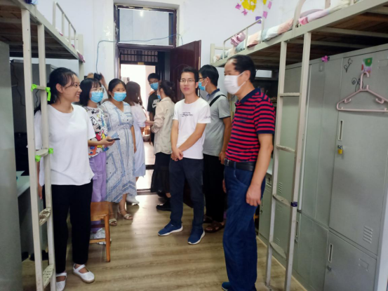 9月13日下午,理工学院院长肖生发、党总支副书记张红梅、学工秘书杨晓杰及全体辅导员教师一行亲临迎新现场,指导迎新工作并走访2020级学生宿舍。