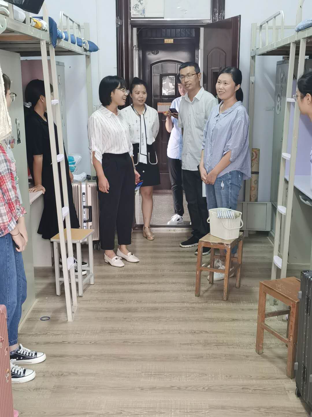 9月14日上午,外国语学院党总支书记李静、学工干事刘阳红和全体辅导员老师深入宿舍走访慰问2020级新同学。
