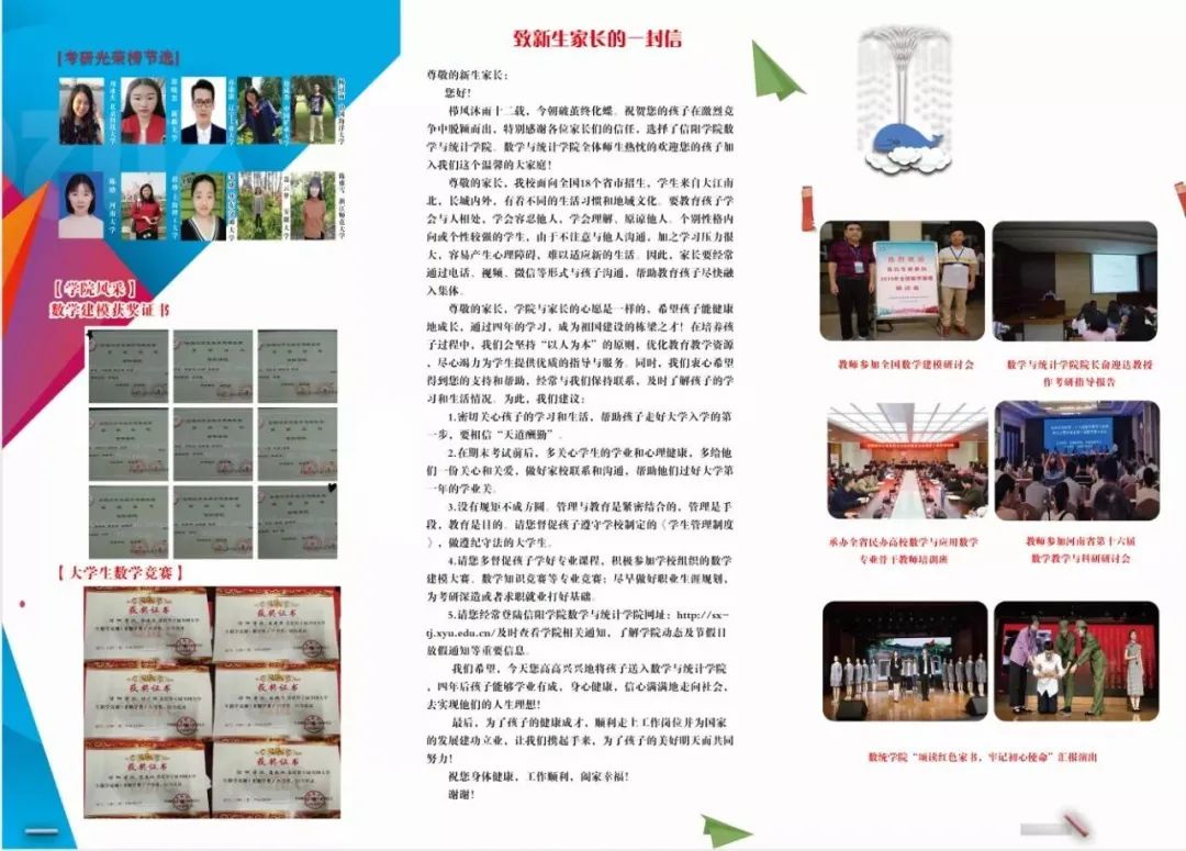 为了感谢家长和学生选择信阳学院数学与统计学院,在新生报到时,我们为每位新生家长送上一封信,希望通过这封信,我们可以得到家长的支持和帮助,也希望家长们可以更加了解我们学院,时刻关注学院动态,及时了解孩子的学习和生活情况。