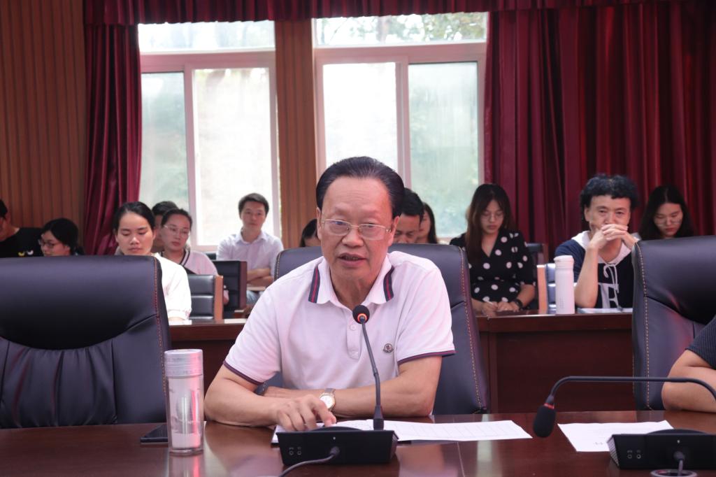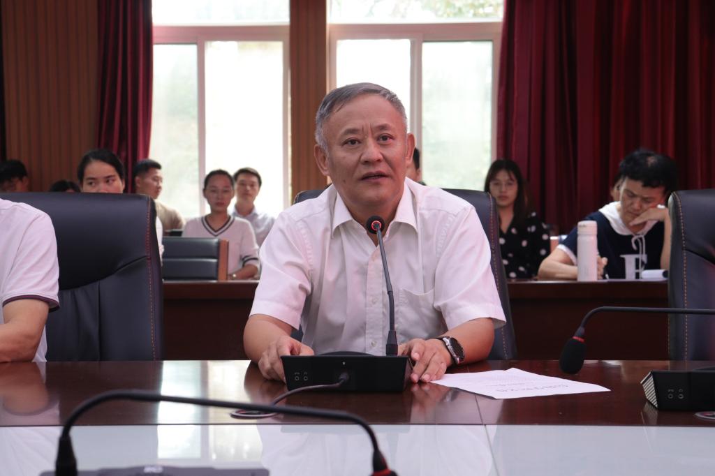 9月15日下午,我院在人文楼208会议室召开文学院期初教学检查自评会,出席此次会议的有学校副校长王强教授、文学院院长毛正天教授,党总支书记张甲楠、行政秘书陈俊、教学秘书陈浩、学工秘书徐远东以及文学院全体教职工,会议由党总支书记张甲楠主持。