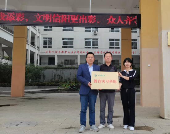 9月23日下午,社会科学学院党总支副书记胡志国、教学干事王娜一行到信阳市南湾中学签订实习基地协议书,并举行授牌仪式。