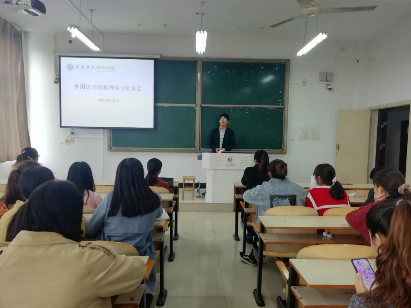 为贯彻落实学校关于开展2021届本科毕业生实习工作的通知和《信阳学院专业实习管理工作条例》的相关规定,保证2021届毕业生校外实习工作的有序开展,10月7日-10月9日,外国语学院各实习小组在学院的统筹安排下分别召开了校外实习动员会。