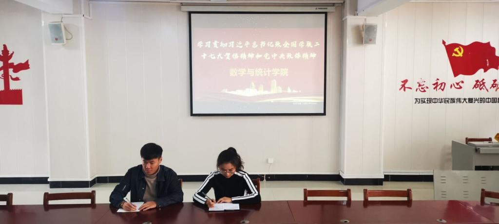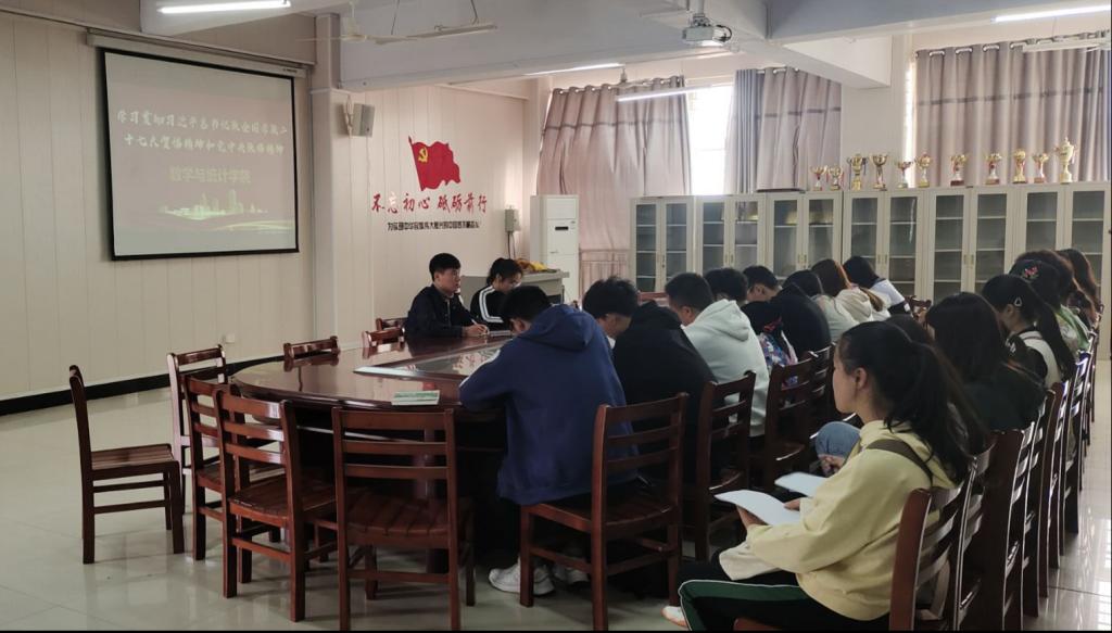 为深入学习贯彻习近平总书记致全国学联二十七大贺信精神和党中央致辞精神,进一步明确新时代青联和学联事业发展前进方向,10月8日中午,数学与统计学院学生会在数计楼407会议室开展学习习近平总书记致全国学联二十七大贺信精神和党中央致辞精神,团总支书记白智然和全体学生会部长参加了此次会议,会议由白智然主持。