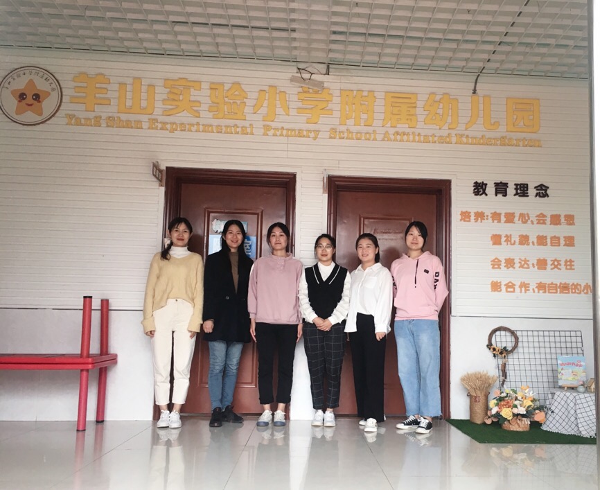 (白兰带队去羊山实验小学附属幼儿园合影)