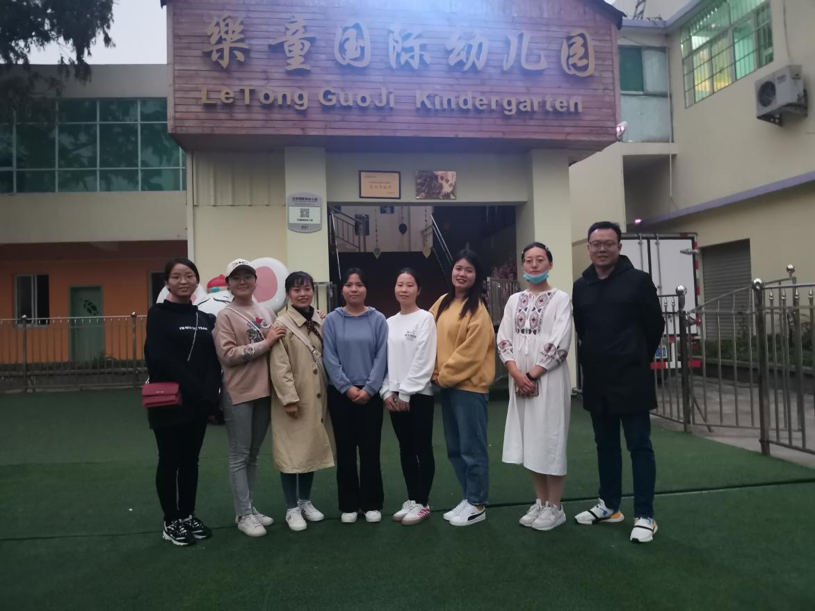 (康耀华、陈娜娜带队去乐童国际幼儿园合影)