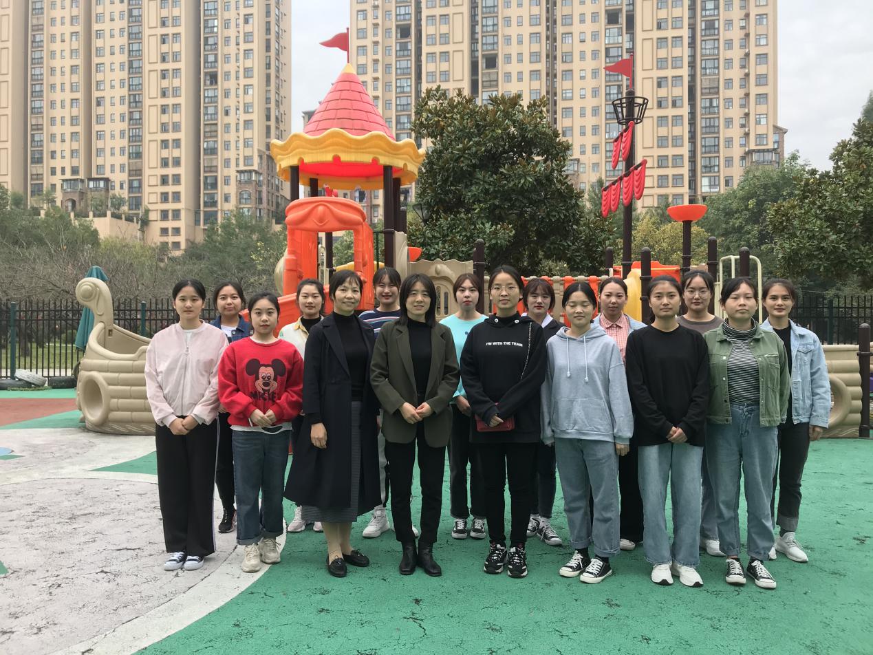 (谢鑫、聂晓宁带队去信阳学院幼儿园合影)