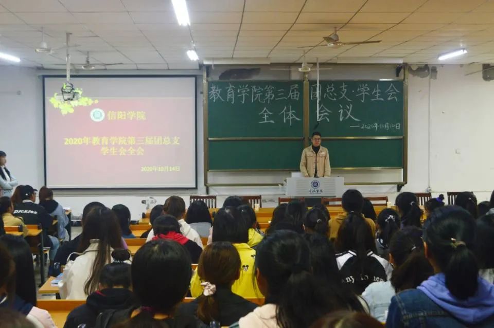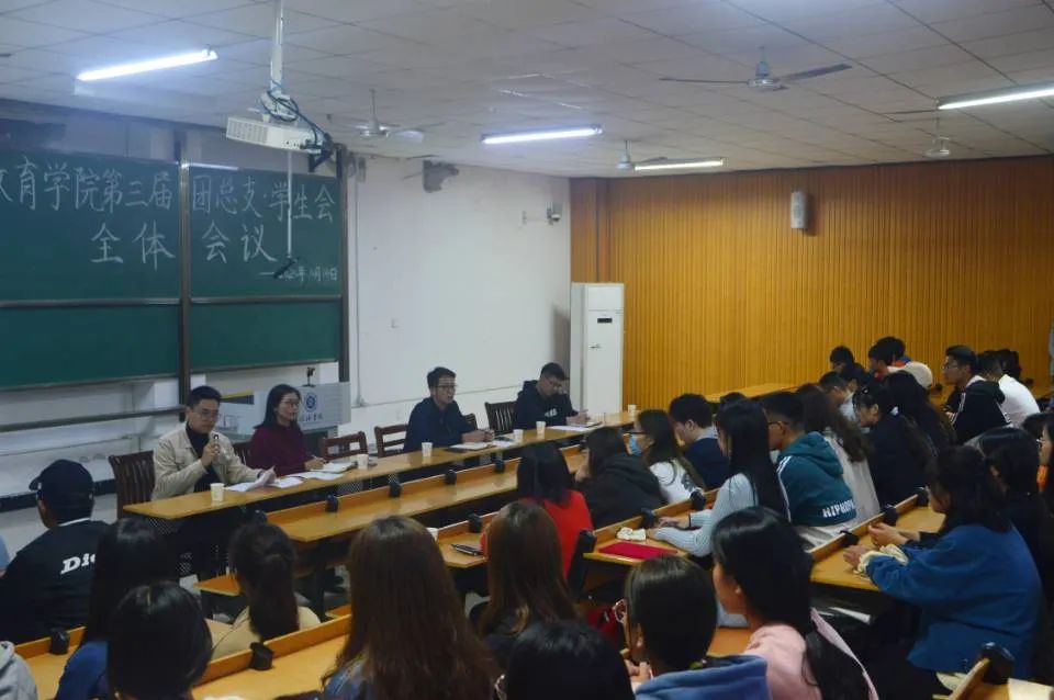 2020年10月15日,教育学院第三届团总支学生会全体会议在社科楼112教室举行。参加此次会议的有党总支书记李赟,学工干事郝昊,团总支书记周余瑞,全体辅导员,2018级、2019级和2020级学生会全体成员以及2020级部分班委。