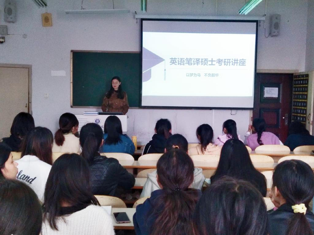 为给考研学生提供更多的考研经验,近日,外国语学院在外语楼304教室举行英语笔译硕士考研指导讲座,2017级和2018级同学参加了本次考研辅导讲座,由关乐乐老师主讲。