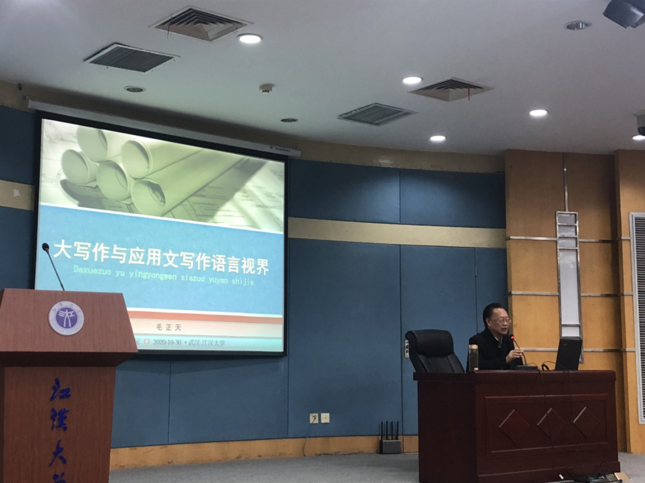 10月30日,国际汉语应用写作学会副会长、中国写作学会副会长、我校文学院院长毛正天教授应邀赴江汉大学讲学。