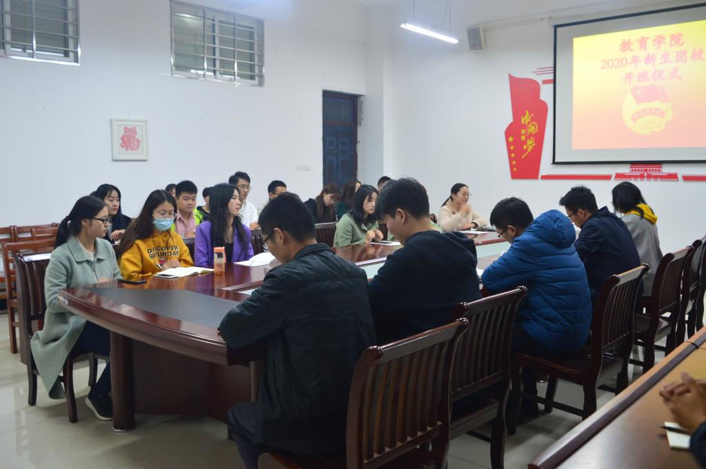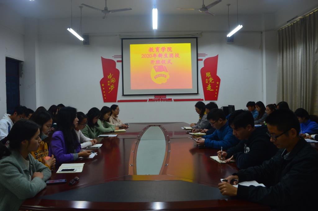 为了充分发挥团组织教育青年的功能,进一步 加大对团员青年、团学干部的培养教育力度,培养高素质人才,教育学院团总支于11月3日下午在社科楼107举行2020级新生团校开班仪式。出席本次大会的有党总支书记李赟、学工干事郝昊、团总支书记周余瑞、全体辅导员、主席团成员以及学生会负责人和2020级各班团支书。