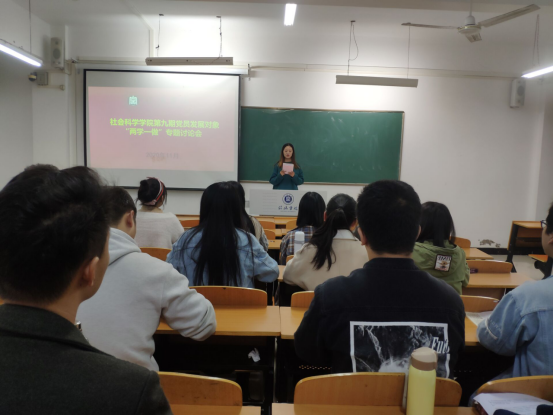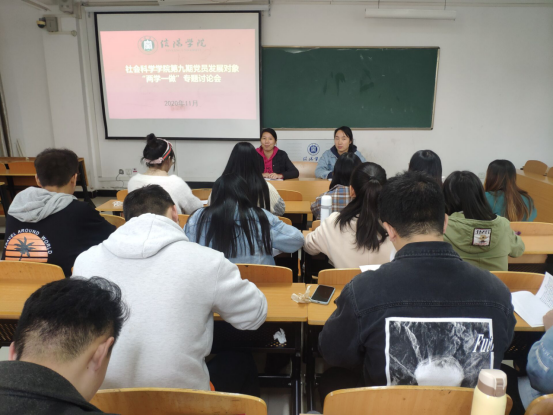 11月3日,社会科学学院学生党支部在社科楼301教室开展“两学一做”专题学习讨论活动。社会科学学院学生党支部书记刘雪、曹惠和我院第九期发展对象参加本次讨论会。