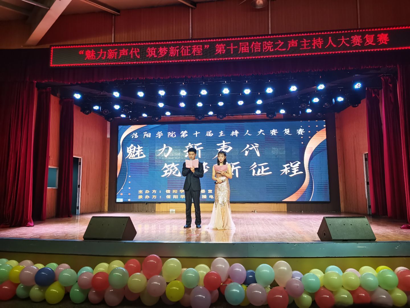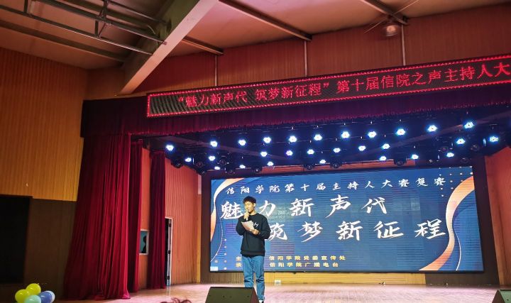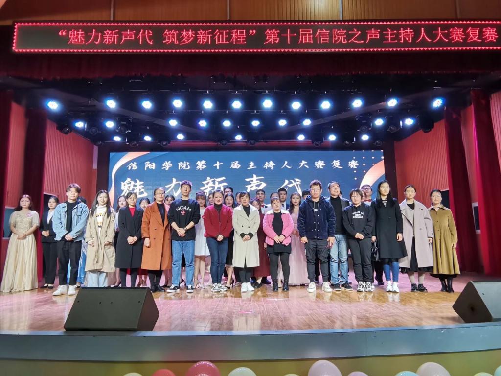 11月5日晚,信阳学院“魅力新声代筑梦新征程”第十届信院之声主持人大赛复赛在大学生活动中心举行。外国语学院教师余文心,文学院辅导员王子,社会科学学院辅导员薛姗姗,教育学院教师吴春宣,理工学院行政干事樊瑞,数学与统计学院学工干事田媛,大数据与人工智能学院学工干事司杰,美术与设计学院学工干事周扬,音乐学院行政秘书李平,土木工程学院行政秘书郗利选,商学院辅导员王超群,宣传处杨正玉,信阳师范学院广播电台台长张晏维、新闻部部长傅志伟、播音部部长李奕婷担任本次复赛评委。各学院选手啦啦队及广播电台全体成员共300余人参加了此次活动。