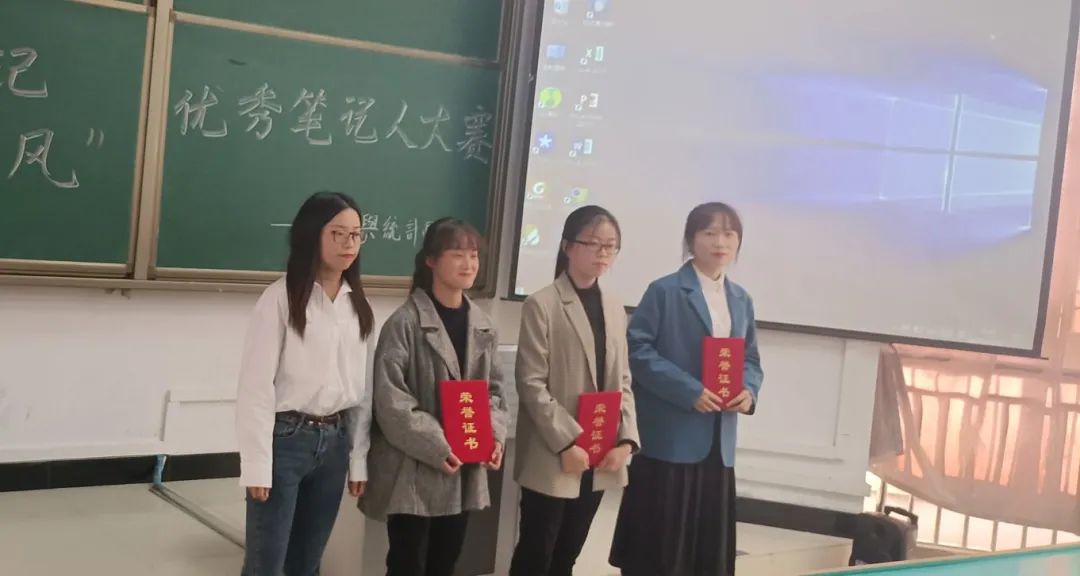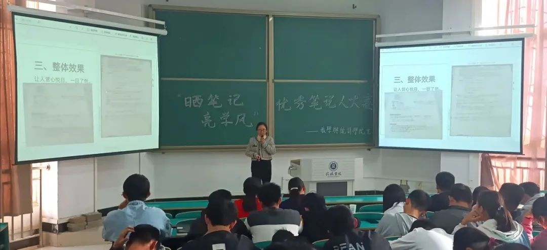 为进一步加强我院学风建设,丰富校园文化生活,提高学生课堂学习效果,营造良好学习氛围,11月12日下午,数学与统计学院第一届优秀笔记人大赛在数计楼208教室隆重举行,学院学工干事田媛、统计学教研室主任王瑞瑞,代数几何教研室李彩娟,辅导员杨雪、白智然、胡涛担任了比赛评委,百余名学生干部和学生代表观看了比赛。