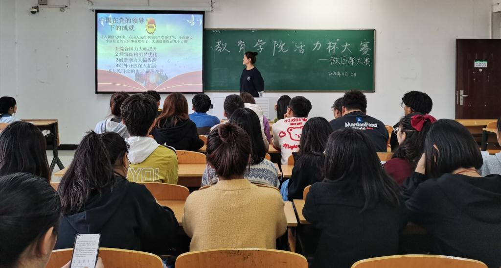 2020年11月15日,信阳学院教育学院于社科楼207举办“教育学院活力杯大赛”。参加本次活动的是2020级学生代表,教育学院主席团及学生会代表。