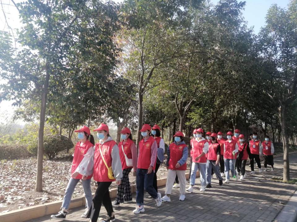 11月 15日,商学院团总支组织2020级新生团校学员开展了志愿服务之浉河公园环境美化活动。