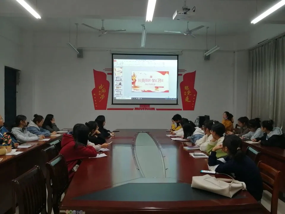 “雄赳赳,气昂昂,跨过鸭绿江。”几十年前,为了祖国的安危,为了民族的尊严,中华儿女就是唱着这首雄壮的战歌,毅然跨过鸭绿江,同以美帝国主义为首的侵略者进行了一场殊死较量。没有从天而降的英雄,只有挺身而出的凡人。 为了纪念抗美援朝胜利70周年,缅怀英雄伟大事迹,深刻学习革命先辈的大无畏精神,激发内心深处的爱国情怀,树立正确的价值观,增强民族自信。11月12日晚上,教育学院谭安妮老师在社科楼107教室召开了以“抗美援朝、保家卫国、树立民族自信”为主题的第二次团课。教育学院20级各班团支书与学生代表聆听了本次团课。