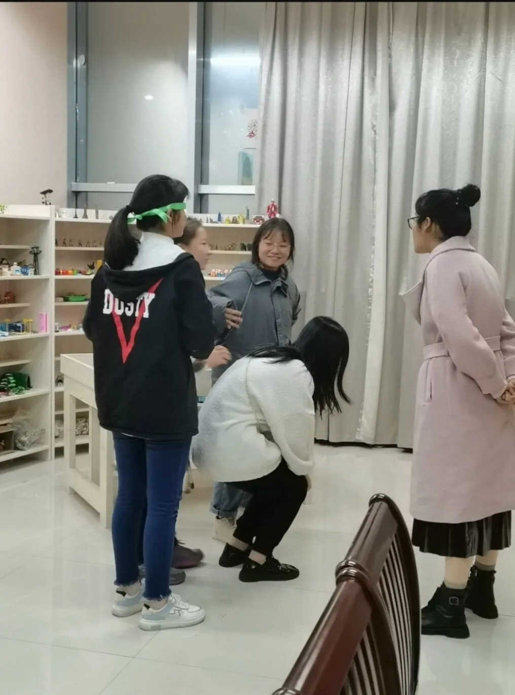 11月20日在室内进行“Trust each other”和“谁是卧底”游戏,前者的游戏规则为:戴眼罩行走,两人一组,互相帮助完成有障碍的旅行。本次游戏是通过“盲人”的角色体验,让同学们理解自助与他助同等重要,同时让同学们感受信任与被信任,爱与被爱的快乐。后者为卡牌游戏,锻炼同学们的语言表述能力、判断能力、观察能力以及应变能力。