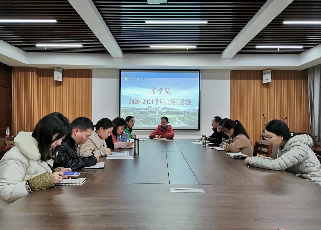 为了更好的迎接合格评估,加强学院文化建设,积极营造浓厚的迎评促建工作氛围,11月25日,商学院在综合楼715召开2020-2021学年宣传工作专题会,党总支书记胡秀云、教学秘书盛大俊、行政秘书高昌慧、学工秘书董高丽、教学干事白鹭和各教研室主任参加了会议,会议由胡秀云主持。