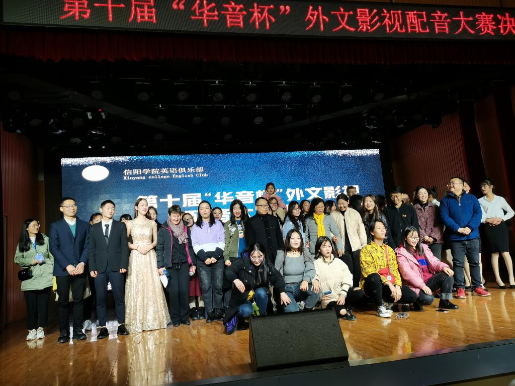 11月24日晚上七点,外国语学院英语俱乐部在大学生活动中心举行第十届“华音杯”外文影视配音大赛决赛。出席本次比赛的嘉宾评委有院长罗德喜教授,教学干事李达老师,社团指导教师陈俊明,Crao、Anna和Justin三位外教教师。