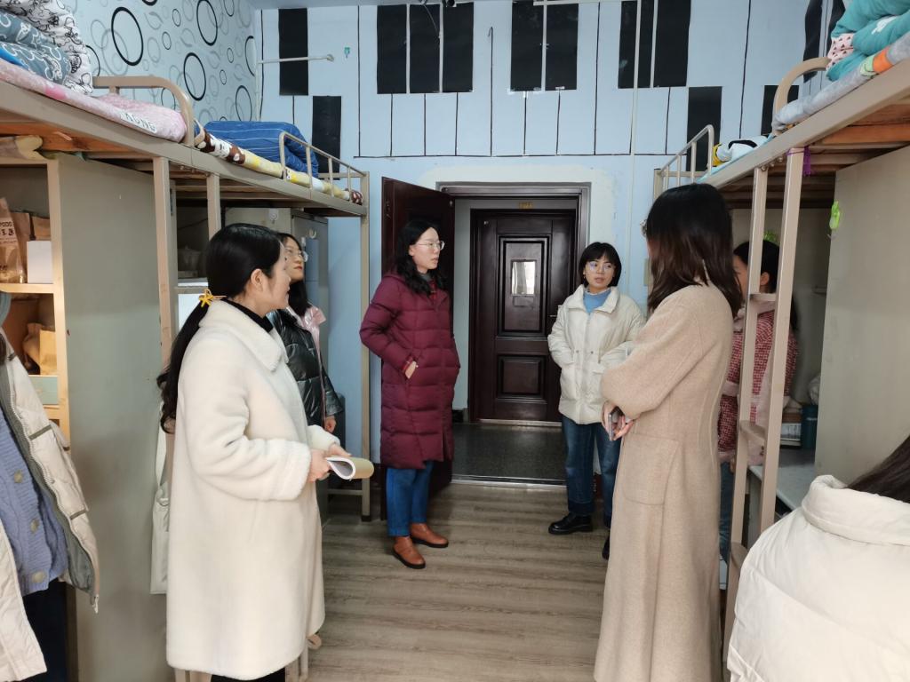 为深入了解学生思想动态,切实加强学生安全稳定工作,11月26日下午,外国语学院党总支副书记程娇炎,学工干事刘阳红及全体辅导员深入学生宿舍,对宿舍进行了文明、卫生、安全大检查。