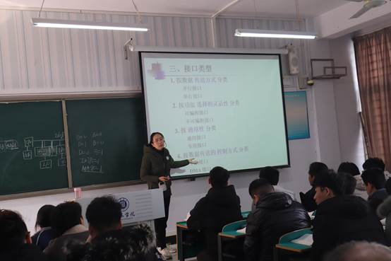 在数计楼302教室听郭晶晶讲授计算机组成原理课程中关于I/O接口技术的内容。在听课过程中,各位老师认真听课并记录。听课结束,在401办公室各位老师就本次听课提出意见和建议,并针对教学内容、教学方法、教学秩序及教学效果,如何开展课程思政等进行了研讨。
