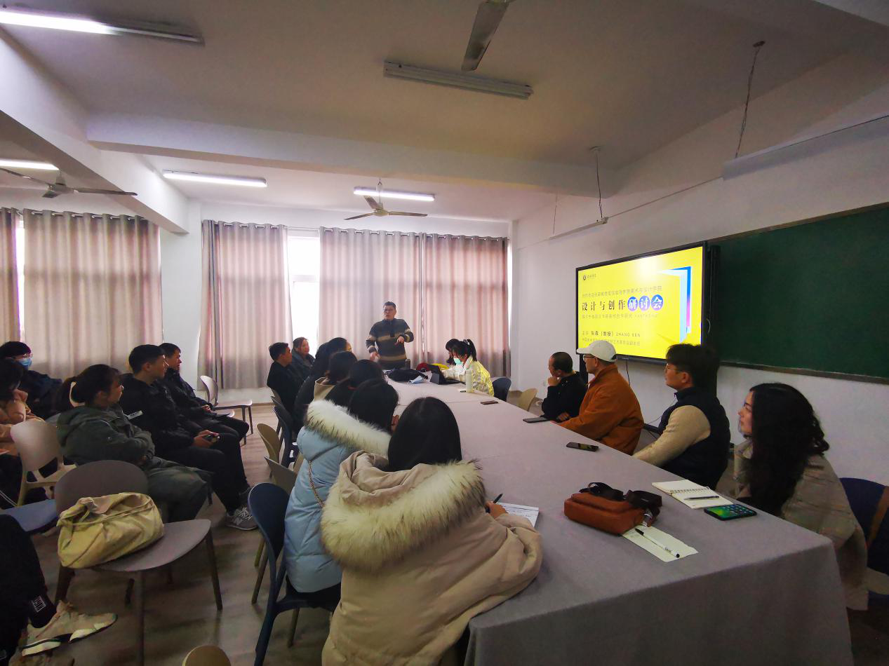 11月29日下午,美术与设计学院邀请中国美术家协会插图装帧艺委会副主任张森教授,在艺术楼408室开展“谈媒介中插图及书籍装帧创作研究”为主题的学术汇报活动。学院院长张瑞瑞、党总支副书记袁军、学工干事周扬,美术学、视觉传达设计、数字媒体设计等教研室的相关教师,学院相关专业的学生代表近50人参加了本次学术汇报活动。学术汇报由张瑞瑞主持。