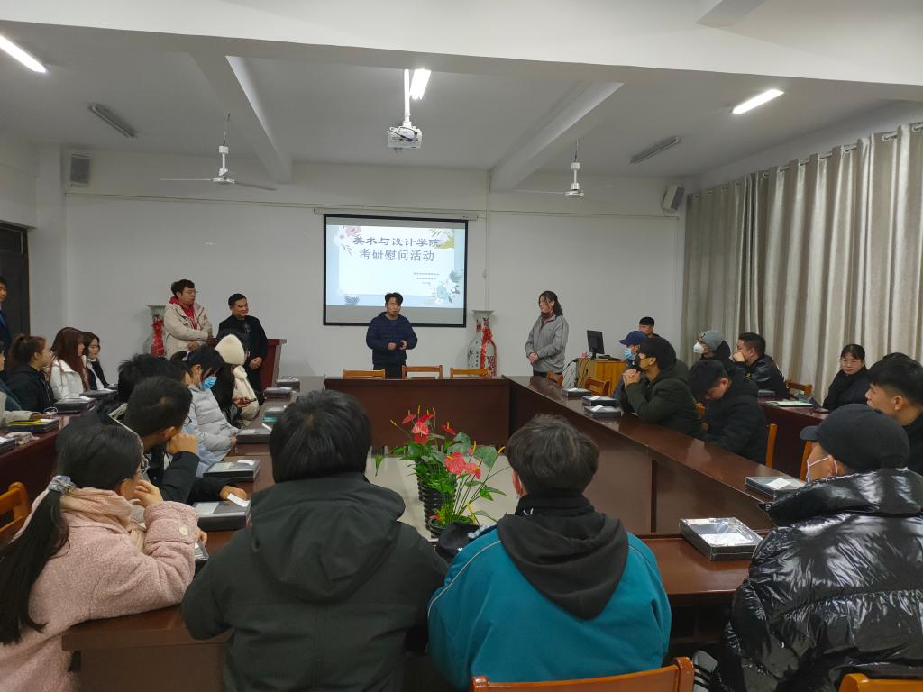 情系考研学生,寒冬温情送暖。12月1日下午,美术与设计学院在艺术楼215会议室召开学院2020年考研学生考前动员会暨考研慰问活动。学院院长张瑞瑞、党总支副书记袁军、学工干事周扬、学院考研工作负责人夏晨翔,宋宏娟等全体毕业班辅导员,学院2020年考研学生代表参加了本次动员会。会议由袁军主持。