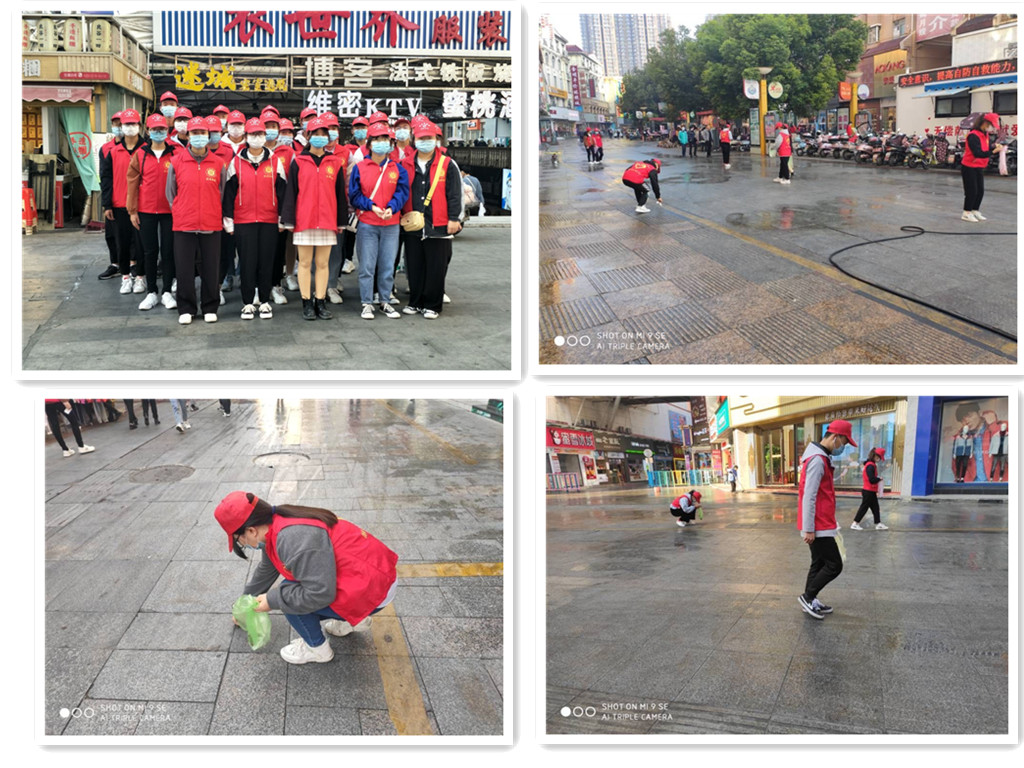 “您好,请助力文明城市创建。”11月15日,在助力文明城市创建活动中,我院志愿者们统一着装,分组行动,劳动在步行街的各个角落。志愿者们发扬不怕累、不怕脏的精神,他们有的手拎垃圾袋;有的弯腰捡拾碎纸屑;有的铲除污垢,他们的身影形成了一道美丽的风景。经过1个多小时的努力,环境面貌在大家的齐心协力下焕然一新。大家用实际行动改善城市环境,引导文明风尚,掀起了“人人倡导文明、人人践行文明”的热潮。