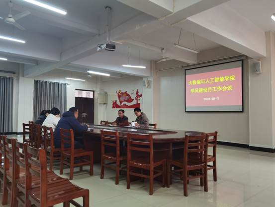 按照学校学风建设工作安排,为进一步推动我院学风建设月活动顺利开展,12月4日下午,大数据与人工智能学院在数计楼407会议室召开学风建设工作专题会议。党总支副书记毛凤翔、学工干事李进和辅导员老师参加了此次会议,会议由李进主持。