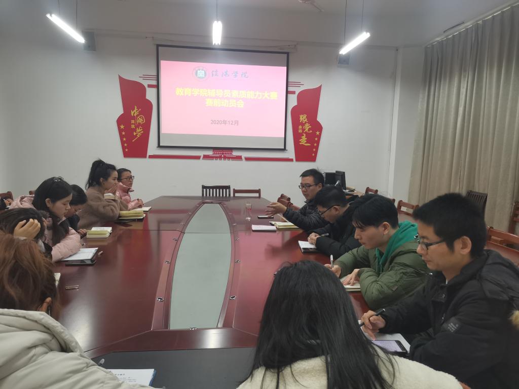 12月10日上午,教育学院在社科楼107召开辅导员素质能力大赛赛前动员会暨学生工作例会,教育学院党总支书记张甲楠、学工干事郝昊及全体辅导员参加了本次会议。