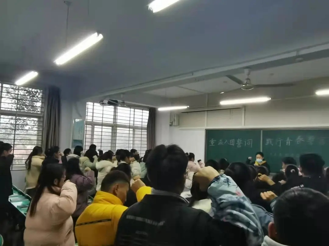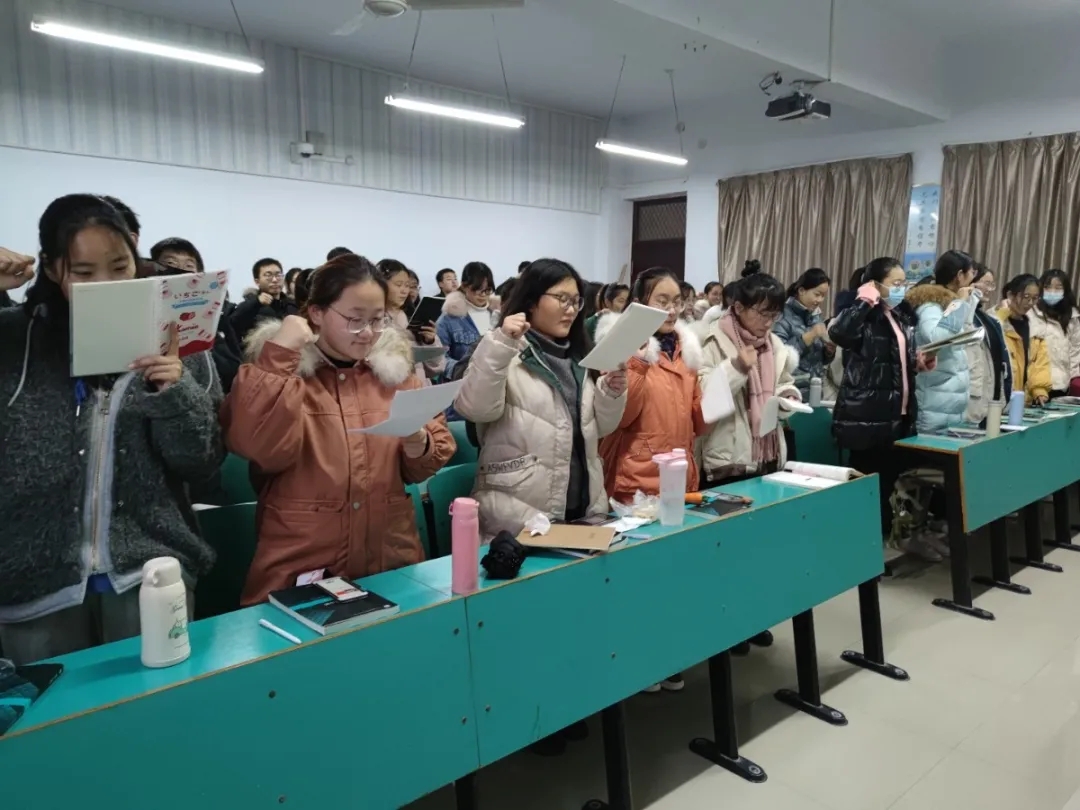 活动开始,全体学生起立齐唱国歌,赞扬抗日青年。接着由各班级团支部书记带领同学们回忆1935年12月9日的“一二·九抗日救亡运动”,并为同学们讲述一二九学生爱国运动的历史意义,同时引导同学们树立远大理想,心怀爱国情怀。活动最后,全体学生重温了入团誓词。