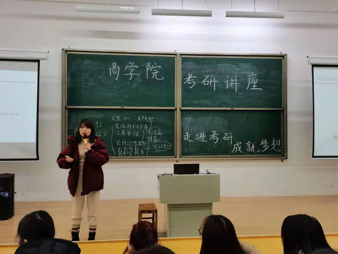 为了进一步加强我院学风建设,激发学生的考研热情,营造乐学、擅学的学习氛围,12月15日晚,财务管理专业在综合楼203举办“走进考研,成就梦想”考研指导讲座。财务管理教研室主任吴娟,青年教师许露露及商学院2018级、2019级财务管理专业200余名到场聆听了讲座。