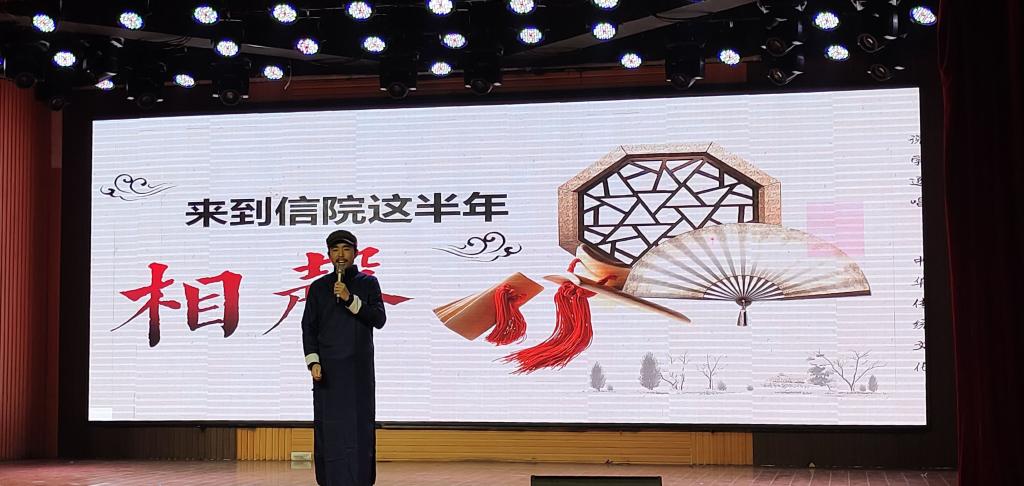 晚会由两院的班长门共同演绎的班长舞拉开帷幕。歌曲《光辉岁月》唱响自信改变未来,勾起了观众们的回忆;在这个不平凡的2020年,所有人都期待着能够摘下口罩,一首朗诵《当我摘下口罩》,流露出多少人的心声;优美的古典舞《烟雨行舟》,罗衣从风,长袖交横;单口相声《来到信院的半年》,诙谐幽默的讲述了新生进入大学校园的生活感受;一支动感的《Mad love》舞蹈,引得台下观众欢呼;歌曲串烧《微微》、《太阳》、《奇妙能力歌》、《飞云之下》等轮番登场,或浪漫温馨,或轻快悠扬,或活泼动感,风格各异,变幻多姿。自编自导的小品《掌声》用惟妙惟肖的表演和别出心裁的服装,引得观众爆笑连连;教授、青年教师带着小朋友踏着动感的节拍,学生身着风格各异的服装依次走上T台,共同演绎了师生T台秀,将整个晚会推向了高潮;手势舞《最好的未来》为观众们营造了温馨有爱的氛围,舞蹈串烧又让观众们沉浸在动感之中。最后,晚会在合唱《武汉呀》的温暖气氛中落下了帷幕。