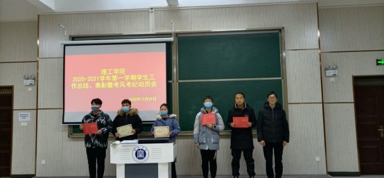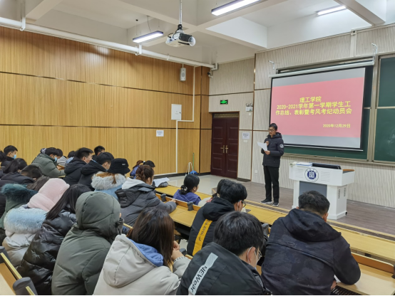 理工学院为总结学生工作和明确考风考纪,12月29日晚上,理工学院在实训中心103教室举办了2020-2021学年学生工作总结、表彰暨考风考纪动员会。理工学院教学副院长李晓严、学生秘书杨晓杰、团总支书记黄艳伟,辅导员甘玉锋、徐国文、郑亚茹,第十四届团总支、学生会全体成员,各班班委和学生代表参加会议。本次会议由黄艳伟主持。